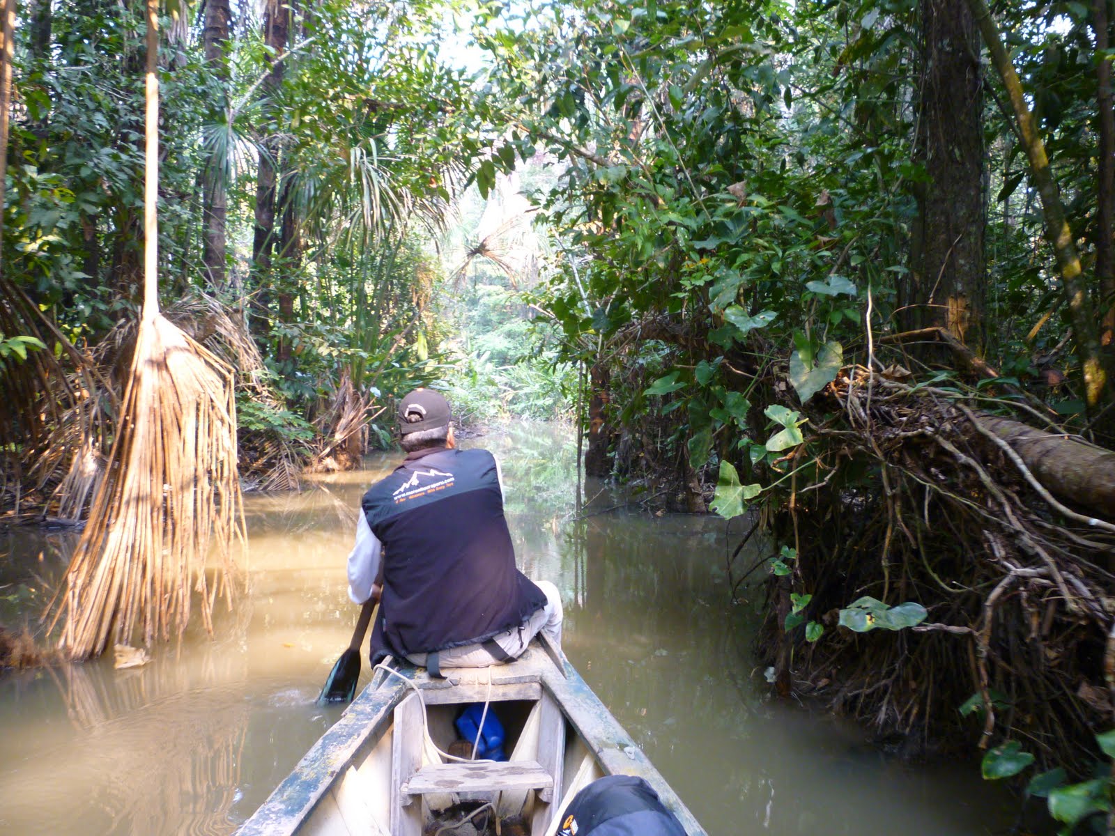 This is the first picture we took entering the narrow water way to the lake. What could lie beyond, we wondered. Well, we had a true jungle experience, not the easiest, the conditions not the best, but it was a fine adventure. We all wondered if Walt Disney had stayed at the Mehia Family Lodge before creating his Jungle Adventure for Adventure Land.